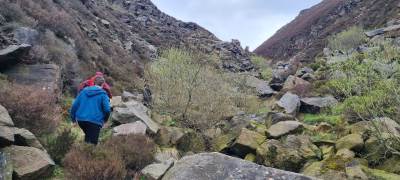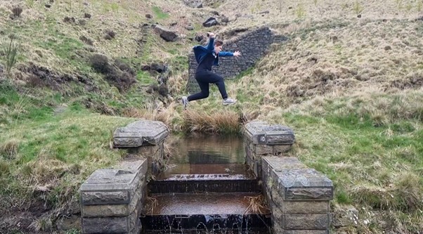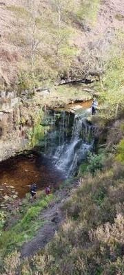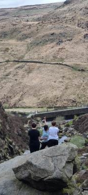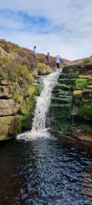 On our next session we then performed a 10km walk out around the back of Dovestones reservoir to find a hidden waterfall. This gave us the opportunity to do some jumping, balancing and then climbing where it was really important we helped each other to navigate the rough terrain.